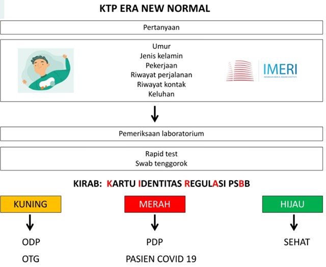 Kartu KIRAB diluncurkan dan diharapkan mampu menjadi sistem penilaian diri sekaligus sistem registrasi nasional Covid-19 berbasis individu. KIRAB merupakan ide pelabelan Platform aplikasi bantujiwa.com yang dikembangkan oleh Indonesian Medical Education Research Institute Fakultas Kedokteran Universitas Indonesia (IMERI FKUI). Kartu ini didukung oleh Ikatan dokter Indonesia (IDI) berkolaborasi dengan BantuJiwa, start up kesehatan digital. Kartu itu langsung mengidentifikasi setiap penduduk Indonesia menjadi merah, kuning atau hijau.