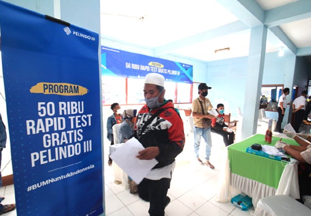 PELINDO 3: Masyarakat pesisir dan calon penumpang kapal di Pelabuhan Kalianget, Sumenep, Madura, mendapatkan layanan rapid test gratis dari PT Pelabuhan Indonesia (Pelindo) III. Sebanyak 3.500 alat rapid test gratis disediakan oleh perseroan untuk memfasilitasi calon penumpang yang akan menyeberang ke Pelabuhan Jangkar, Situbondo.