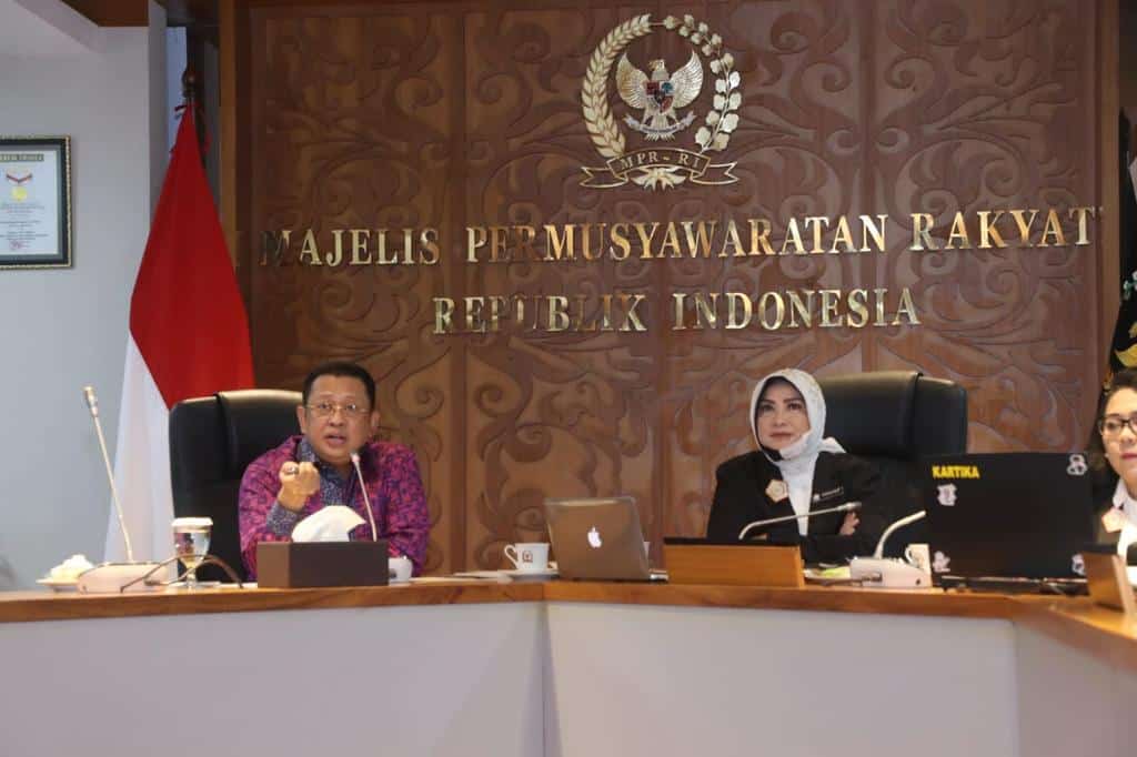 Ketua MPR RI Bambang Soesatyo saat mengisi Sosialisasi Empat Pilar MPR RI kepada Forum Pemberdayaan Perempuan Indonesia (FPPI), secara virtual dari Ruang Kerja Ketua MPR RI, Jakarta, Senin (10/8).