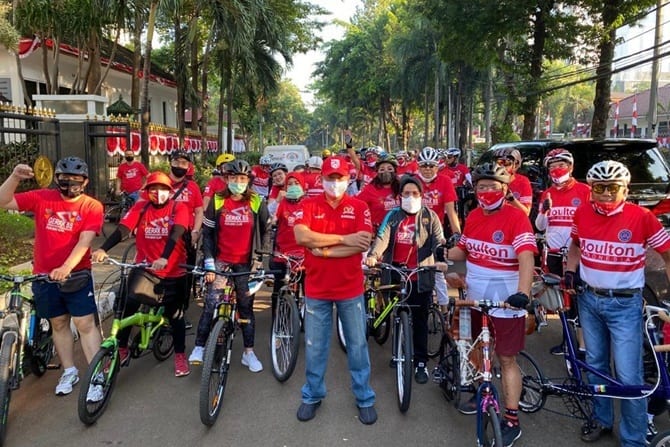 JawaPos.com - Ketua MPR RI Bambang Soesatyo bersama Gerakan Keadilan Bangun Solidaritas (Gerak BS) Fun Bike Club dan Moulton Bicycle Club Indonesia melakukan giat Gowes Sehat. Gowes Sehat yang mengambil track dari Jalan Widya Chandra, Jakarta Selatan hingga Gelora Bung Karno (GBK) ini diadakan dalam rangka memperingati HUT RI ke-75.