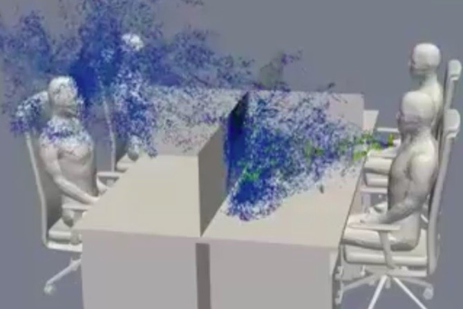 Ilustrasi partisi di meja kantor yang dikatakan tak mampu cegah penularan virus korona. Screengrab/Twitter/nhk_news