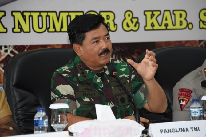 Panglima TNI, Marsekal TNI Hadi Tjahjanto saat tata muka dengan tokoh masyarakat, tokoh adat, tokoh agama, tokoh pemuda dan tokoh wanita dari Kabupaten Biak Numfor dan Kabupaten Supiori Papua. (Pupen TNI for jAwapos.com)