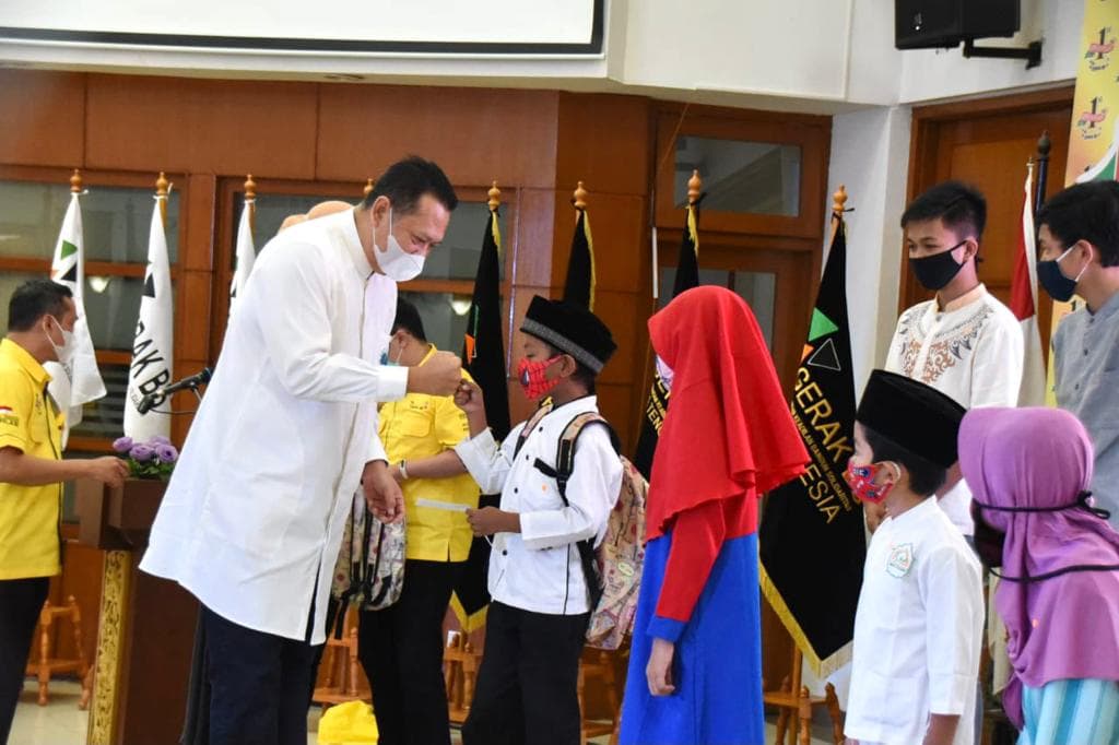 Ketua MPR RI Bambang Soesatyo saat meresmikan Majelis Ta’lim-BS, yang dibarengi dengan santunan anak yatim, di Bogor, Jumat (18/12).