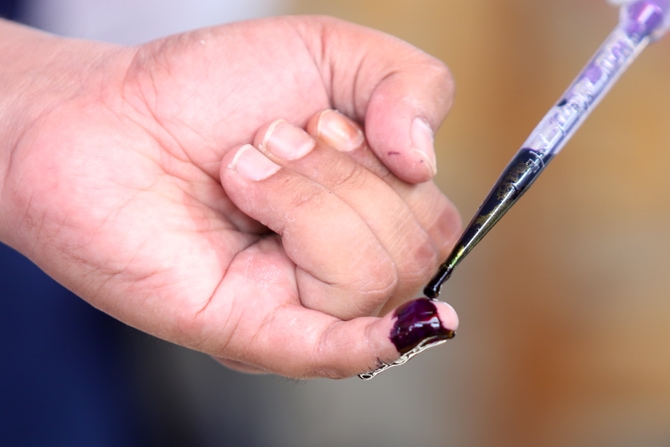 Pemilih menggunakan hak pilihnya di TPS 49 di perumahan Cendana Residence, Pamulang, Tangerang Selatan, Banten, (09/12/2020). Pencoblosan Pemilihan Kepala Daerah (Pilkada) digelar serentak seluruh Indonesia. Foto: Dery Ridwansah/ JawaPos.com