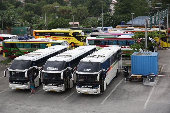 Calon penumpang bersiap menaiki bus antarkota di Terminal Terpadu Pulogebang, Jakarta, Selasa (22/12/2020). Jelang Natal dan Tahun Baru, warga mulai mudik ke kampung halaman. Meski libur panjang dibatalkan, pemudik tetap terlihat di Terminal Pulogebang, J