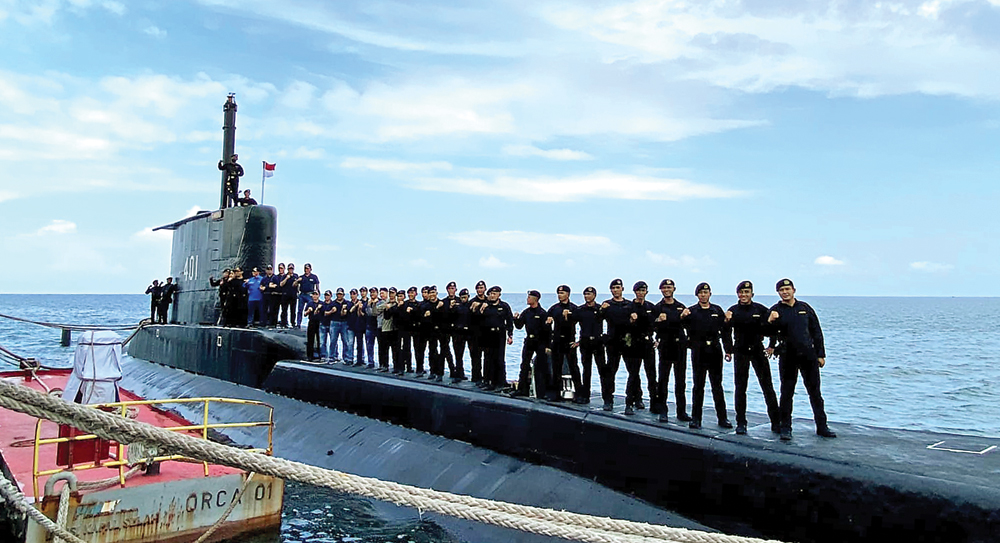 TERUJI: Awak kapal selam KRI Cakra-401 berfoto bersama saat commodore inspection di perairan Panarukan, Situbondo, Jawa Timur (PT PAL Indonesia)