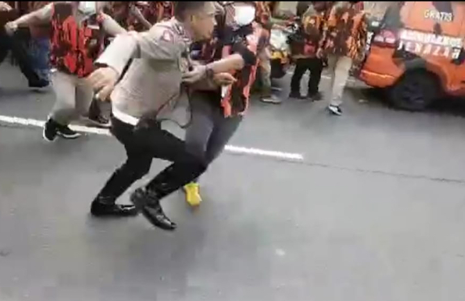 Perwira polisi dikeroyok massa dari Pemuda Pancasila. (Istimewa)