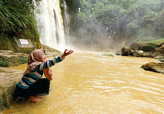 LEBIH BAIK DATANG SENDIRI: Shinta Fitri Muliya dua kali putus dari pacarnya setelah mengajak mereka ke Air Terjun Nglirip. (Frizal/Jawa Pos)