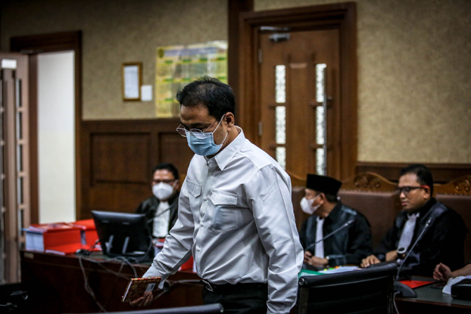 "Rencana kita hari ini (putusan) tapi ternyata ketua majelisnya pulang ke Makassar di sana terpapar (Covid-19). Jadi sakit, ini baru saya konfirmasi juga hakim ad hoc pak Jaini Bashir juga sakit sudah dua hari sepertinya terpapar Covid," kata Hakim Anggota, Fahzal Hendri menyampaikan penundaan sidang di ruang persidangan Pengadilan Tindak Pidana Korupsi (Tipikor) pada Pengadilan Negeri Jakarta Pusat, Senin (14/2).