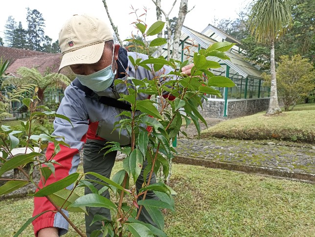 Petugas Kebun Raya Cibodas merawat Syzygium ampliforum Amshoff, salah satu tanaman Indonesia yang hampir punah. Hilmi Setiawan/JawaPos