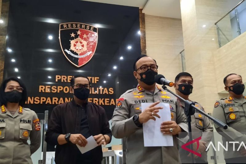 Kepala Divisi Humas Polri Irjen Pol. Dedi Prasetyo memberikan keterangan pers tentang penetapan tersangka Bharada E di Mabes Polri, Jakarta, Rabu (3/8/2022). (ANTARA/Laily Rahmawaty)