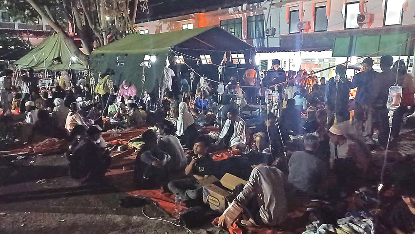 DARURAT: Petugas medis melayani korban gempa di halaman RSUD Cianjur tadi malam. (TIM RADAR CIANJUR)