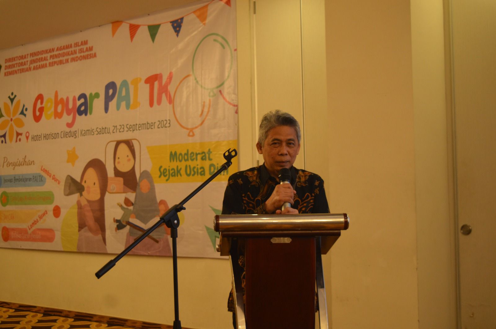 Upaya menanamkan moderasi beragama pada anak-anak usia dini itu dijalankan lewat kegiatan Gebyar Pendidikan Agama Islam (PAI) Taman Kanak-kanak (TK). Pada gelaran tahun ini, Gebyar PAI TK mengusung tema Moderat Sejak Usia Dini. Babak Penyisihan Gebyar PAI berlangsung di Kota Tangerang pada 21 – 23 September. Sementara babak final direncanakan awal Oktober nanti.