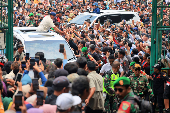 Ribuan masyarakat yang mayoritas petani dan peternak tersebut berebut ingin bersalaman dan mengabadikan momen bersama Prabowo Subianto.