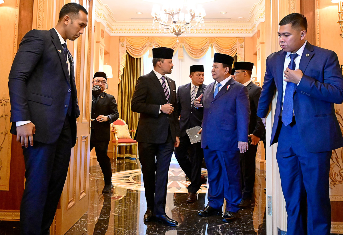 Presiden Prabowo Subianto menggelar pertemuan dengan Sultan Hassanal Bolkiah Mu’izzaddin Waddaulah di Istana Nurul Iman, Brunei Darussalam, Rabu (14/5). (Dok. Setneg).