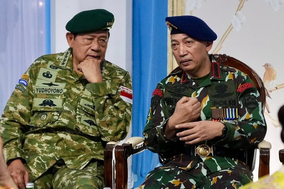 Presiden Prabowo Subianto di damping Menteri Pertahanan Sjafrie Sjamsoeddin, Panglima TNI Jenderal TNI Agus Subioyanto dan Komandan Upacara HUT TNI Letjen Bambang Trisnohadi memeriksa pasukan saat upacara peringatan Hari Ulang Tahun (HUT) ke-80 Tentara Na