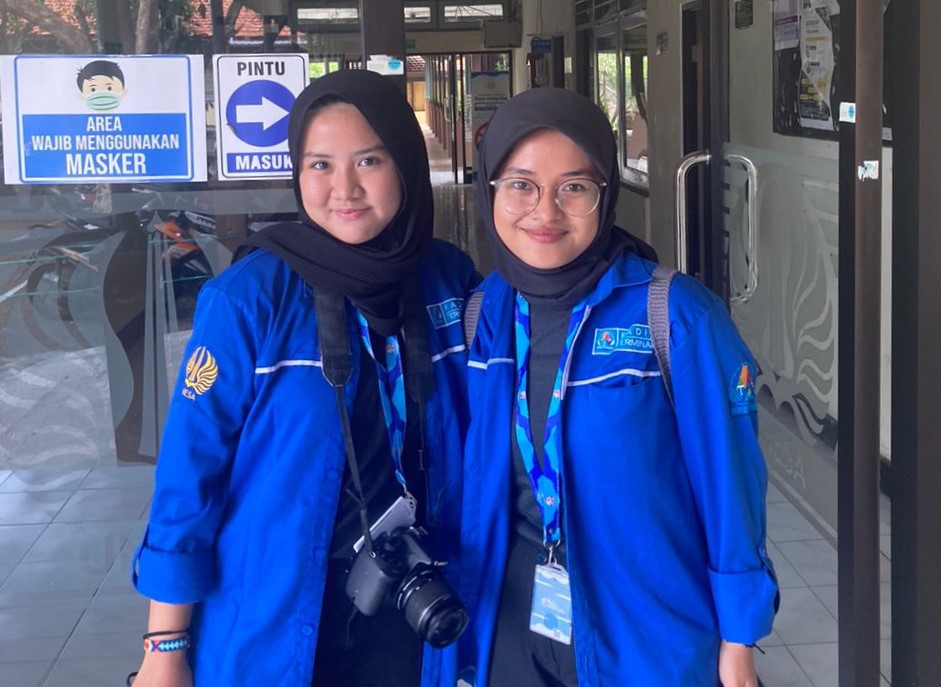 Erza Angelia Putri (kanan-kacamata) bersama rekannya di pers mahasiswa, Radio Terminal UNESA. (Istimewa)