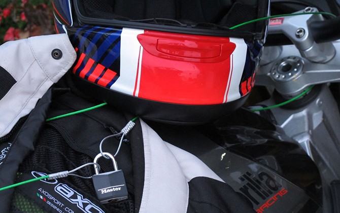 Alat ini bisa digunakan untuk mengamankan helm dan jaket