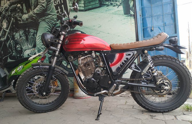 "Contoh, kalau mau bikin bradstyle, atau scrambler, kita cari bahannya tuh yang rangka tunggal. Kalau deltabox kaya V-ixion, susah. Bisa si cuma yang dibuang banyak, modal banyak sama seperti bangun motor ulang," sambung dia.