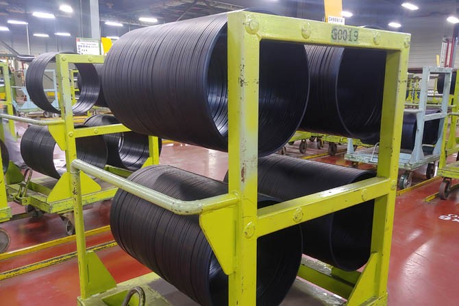 Proses awal pembuatan ban, membuat bead atau lingkar penyangga ban yang menempel di lips velg. (Rian Alfianto/JawaPos.com)