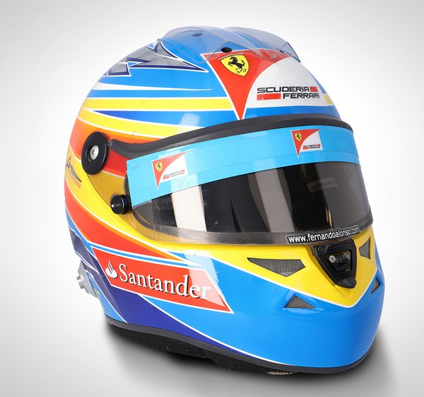 Helm milik Fernando Alonso yang dipakai pada musim 2011 juga ikut dilelang. (Formula 1)