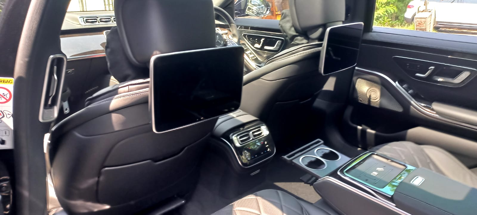 Saat duduk di bangku belakang S 450 L terasa sangat nyaman. Headrest untuk dua penumpang belakang juga sudah ditambahkan bantal yang sangat empuk. Selain nyaman, adanya headrest di bangku belakang juga membuat siapapun akan cepat terlelap saat melakukan perjalanan jauh.
