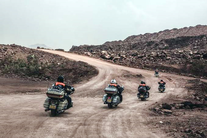 Foto: Ilustrasi: Berkendara sepeda motor di jalan rusak. (Book Motorcycles Tours).