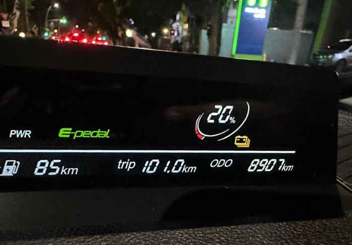 Ketika tingkat baterai mencapai 20%, 15%, dan 10%, lampu indikator akan menyala berwarna kuning sebagai pengingat bahwa daya baterai sudah rendah dan disarankan untuk segera mengisi daya pada mobil.