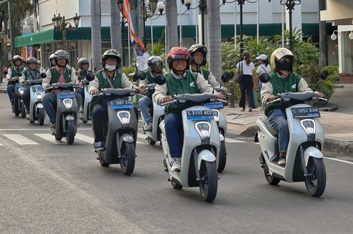 Honda EM1 e saat melintas jalanan Surabaya dalam acara “ESG Mission, Engaging for The Future”.