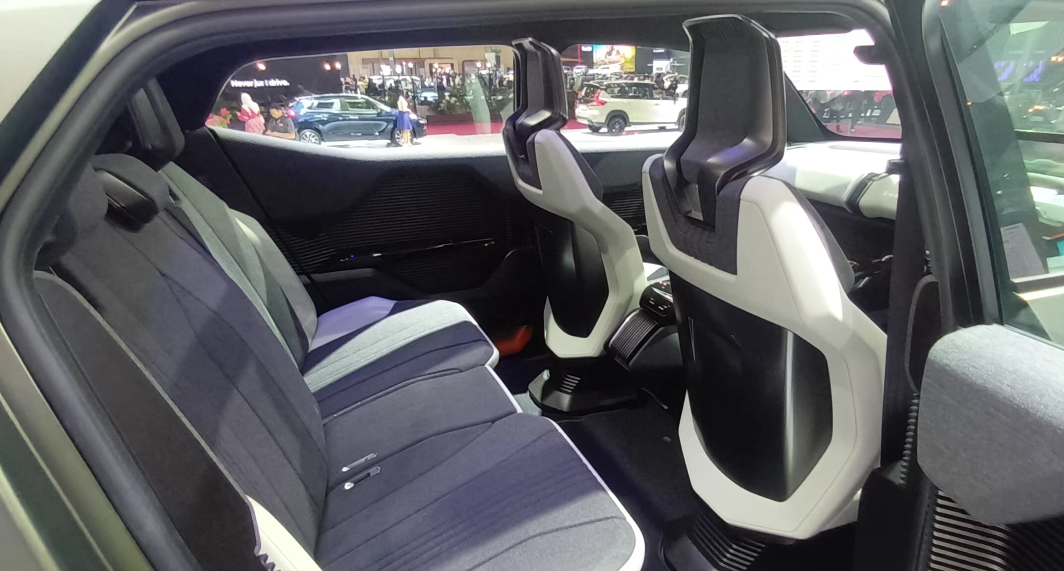 Pemanfaatan keuntungan platform BEV membuat ruang interior eVX jadi lapang. Kesan ketangguhan sebuah SUV diekspresikan lewat tough seat shape. Selain itu, kecanggihannya tervisualisasikan lewat large seamless display and the dial shift, sehingga benar-benar mencerminkan High-tech x Adventure.