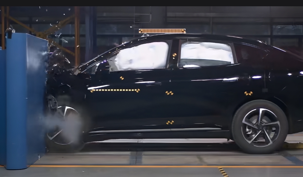 Dalam simulasi, pilar A, B, dan C tetap utuh tanpa deformasi, sementara pintu yang terkena benturan tetap dapat dibuka secara normal. Dari hasil uji tabrak terlihat, Sub-frame tetap kokoh, system baterai tidak terganggu, dan keseluruhan bodi tetap terjaga.