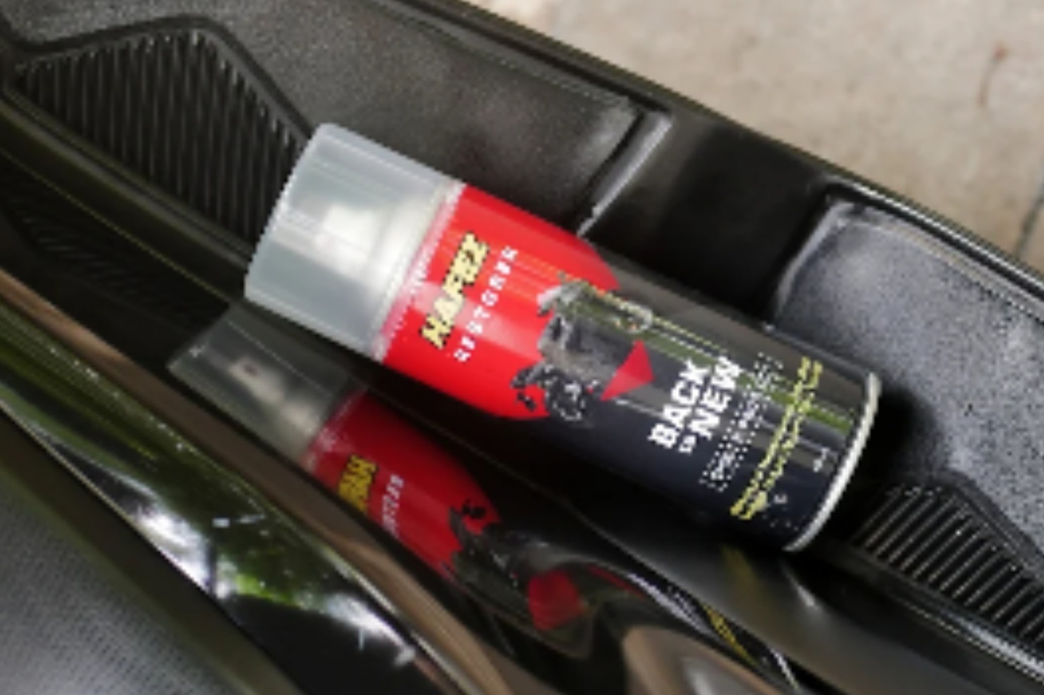 Salah satu pilihan carian pemoles jenama Hafez memberikan solusi perawatan dikalangan para rider aktif, cukup menyemprotkan cairan Hafez Restorer setelah mencuci motor.