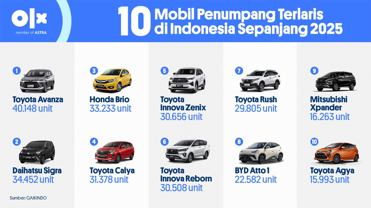 10 Mobil Penumpang Terlaris di Indonesia Sepanjang 2025. (Istimewa).