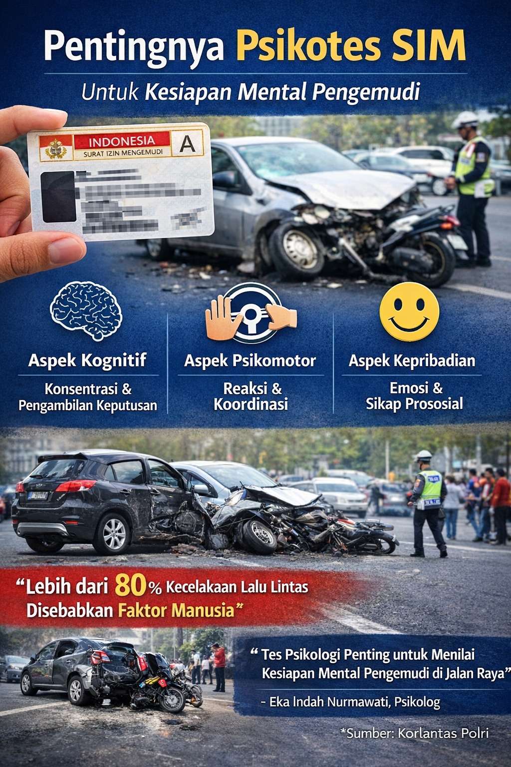 JawaPos.com - Psikotes dalam proses pembuatan Surat Izin Mengemudi (SIM) merupakan bagian dari sistem perizinan berkendara di Indonesia. Meskipun sebagian masyarakat memandangnya sebagai prosedur administratif tambahan, secara ilmiah psikotes memiliki fungsi yang sangat penting, yaitu memastikan kesiapan mental calon pengemudi sebelum berada di jalan raya.