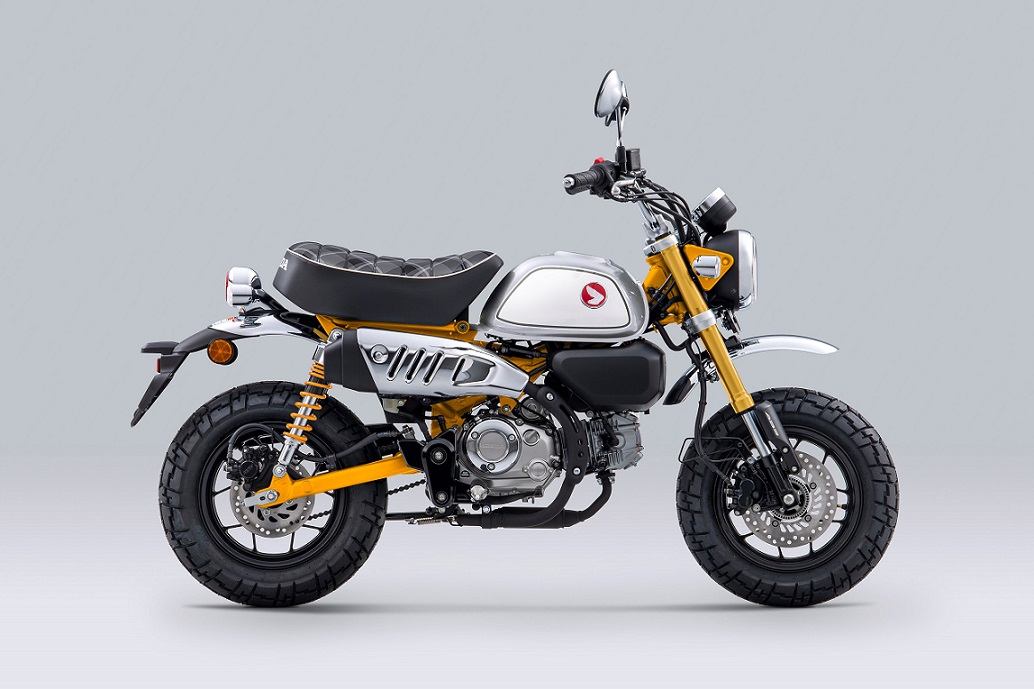 Sedangkan pattern jok warna hitam, putih, dan abu-abu dipasangkan dengan Honda Monkey warna Banana Yellow dan Pearl Shining Black. Detail lain yang berubah adalah warna rangka yang mengikuti tipe warna.