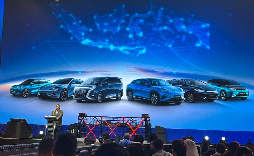 Head of Marketing, PR & Government BYD Indonesia, Luther T Panjaitan dalam Konferensi pers GIIAS 2025 di Jakarta, Rabu (18/6). (Nanda Prayoga/JawaPos.com)