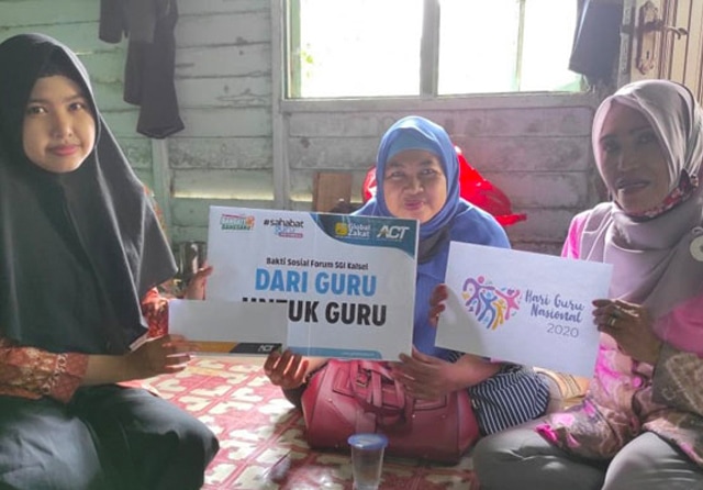 Hairunisa yang merupakan guru honorer di SD Murung Raya 1 Banjarmasin menjadi salah satu korban kebakaran besar di Pulau Bromo tepat sebulan yang lalu. Rumahnya terbakar habis. Hasil galang dana Aksi Cepat Tanggap (ACT) yang bertajuk ’’Dari Guru untuk Guru’’ itu diserahkan oleh Sarlinda dan Jahrah, perwakilan FSGI Kalsel, Rabu (25/11).