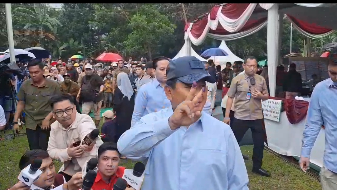 Capres nomor urut 2 Prabowo Subianto telah selesai melakukan pencoblosan Pemilu 2024.