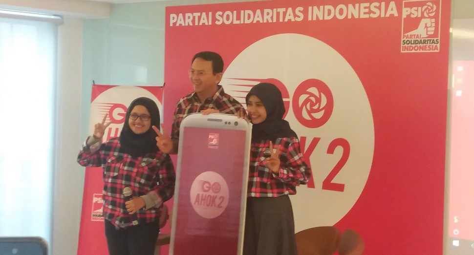 JawaPos.com - Partai Solidaritas Indonesia (PSI) menunjukkan dukungannya untuk pasangan calon Gubernur DKI Jakarta Basuki Tjahaja Purnama-Djarot Saiful Hidayat. Bahkan, sebagai bentuk keseriusan dukungannya, partai yang dipimpin Grace Natalie itu meluncurkan aplikasi Go Ahok 2.