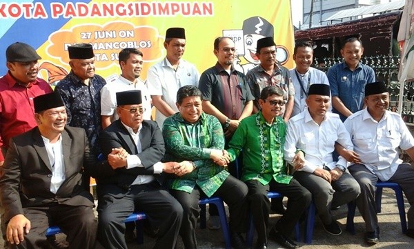 Tiga Paslon Wali Kota dan Wakil Wali Kota Padang Sidimpuan berfoto bersama komisioner KPUD Kota Padang Sidimpuan usai penetapan calon, Senin (12/2).