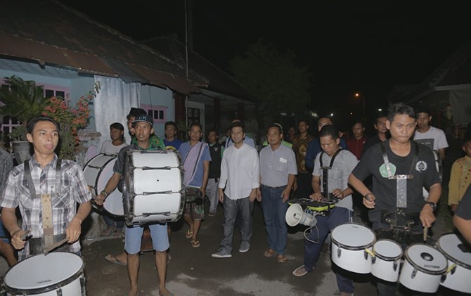 JawaPos.com - Warga Desa Kedungrejo, Kecamatan Jabon, Kabupaten Sidoarjo, menggelar sahur on the road, Rabu (23/5) dini hari. Acara dihadiri Calon Wakil Gubernur (Cawagub) Jawa Timur (Jatim) Emil Elestianto Dardak.