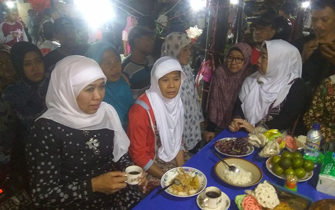 JawaPos.com - Calon Gubernur (Cagub) Jawa Timur (Jatim) Khofifah Indar Parawansa menjalankan aktivitas kampanye di Kabupaten Bojonegoro, Senin (28/5) dini hari. Usai berkeliling di Pasar Tradisional Kota, Khofifah makan sahur di warung di area pasar.