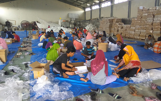 Sejumlah pekerja sedang melakukan penyortiran dan pelipatan surat suara untuk Pilbup Bojonegoro 2018.