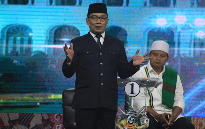 JawaPos.com - Debat pamungkas Calon Gubernur-Calon Wakil Gubernur (Cagub-Cawagub) Jawa Barat (Jabar) berlangsung di Ballroom Sudirman, Bandung, Jumat (22/6) malam. Susunan acaranya berbeda dengan debat perdana maupun kedua. Kandidat tidak diperkenankan saling bertanya satu sama lain.