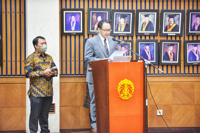 Rocky Prasetyo Jati dalam Sidang Promosi Doktor di Auditorium Juwono Sudarsono Fakultas Ilmu Sosial dan Politik (FISIP) Universitas Indonesia, Depok