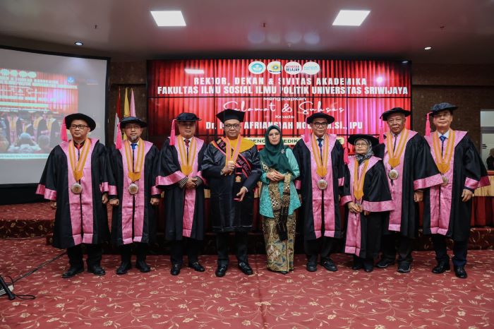 Wamenaker Afriansyah Noor resmi mendapat gelar doktor dari Universitas Sriwijaya (Unsri), Palembang. (Istimewa)