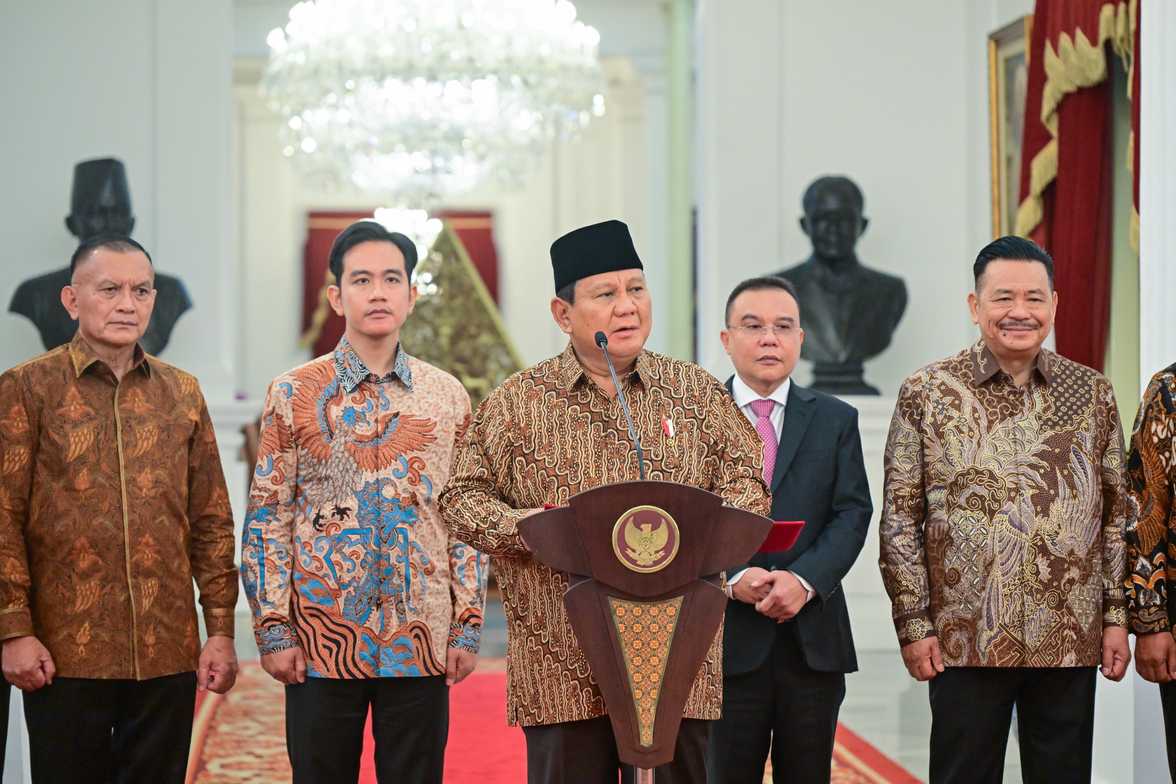 Presiden Prabowo Subianto saat mengumumkan menteri dan wakil menteri. (Kemensetneg)