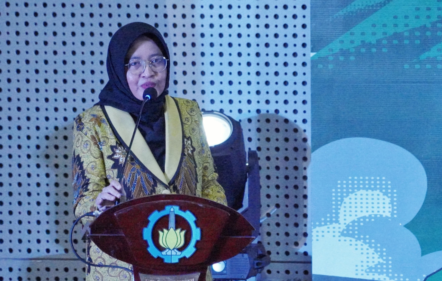 Wakil Rektor I ITS Prof Nurul Widiastuti saat launching prodi S1 Sains Komunikasi ITS di Auditorium Research Center ITS, Senin. (Humas ITS)