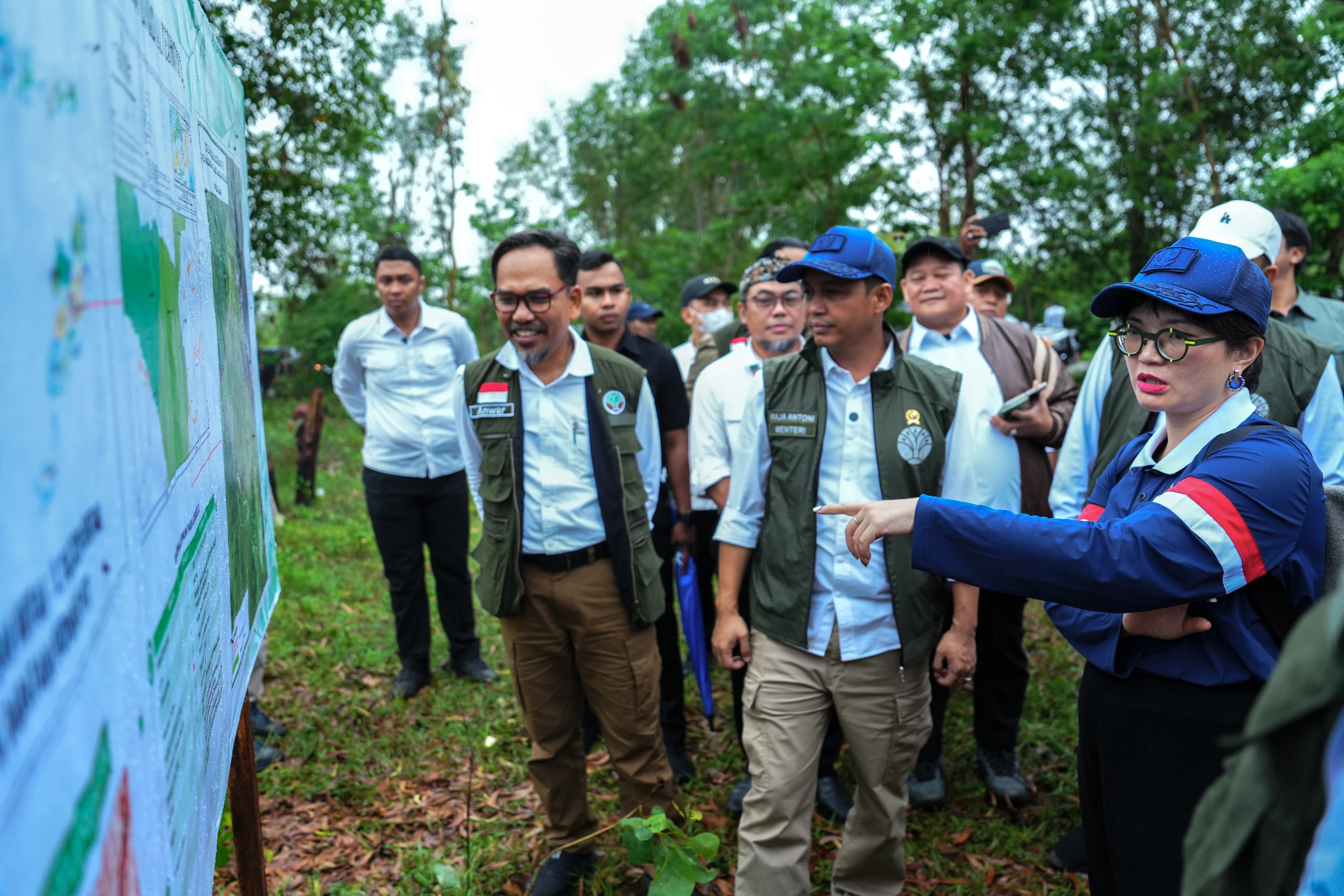 Dalam kunjungannya Menhut didampingi jajaran Kementerian Kehutanan, Plt Sekjen Mahfudz, Direktur Jenderal Planologi Kehutanan Ade Tri Ajikusumah, Direktur Jenderal Pengelolaan Daerah Aliran Sungai dan Rehabilitasi Hutan Dyah Murtiningsih, Direktur Jenderal Penegakan Hukum Kehutanan Dwi Januanto Nugroho, serta beberapa jajaran lain.