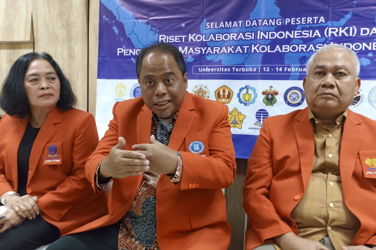 Ketua Asosiasi Lembaga Penelitian dan Pengabdian Masyarakat (LPPM) PTNBH Yuli Setyo Indarto (tengah) di kampus Universitas Terbuka (13/2). (Hilmi Setiawan/Jawa Pos)
